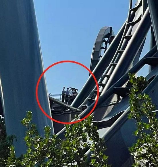 就在这时,两名工作人员从一旁的维修梯走上轨道,并对过山车上的30多名游客说,过山车马上就会启动。然而2分钟后,又从维修梯上来了8名工作人员。“抱歉,这个设施故障了,我们带大家离开。”其中一名工作人员说。