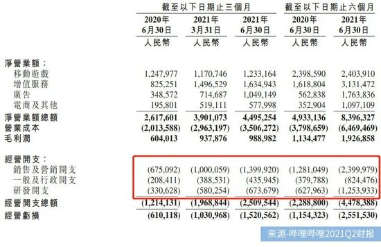 营销开支增长或是毛利降低的一大原因。财报显示:二季度 B站经营开支总额为25.10亿元,同比增加106.69%;其中,二季度销售及营销开支为14.00亿元,同比增加107.37%。