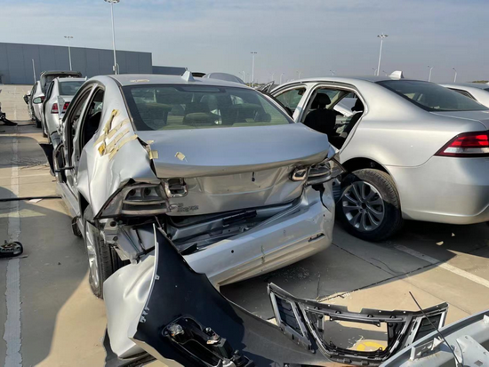 在工厂内部,财经汽车留意到,在焊装车间正对面,有一个四五个车间面积大小的停车场,停放了一辆已经上了绿牌的NEVS 93,以及二十余辆NEVS 93的碰撞试验车和白车身等,部分碰撞试验车的车头和车尾位置已经明显损毁。