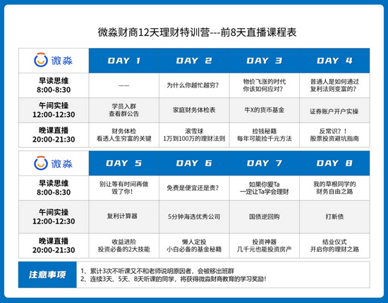 据官方介绍,其课程设置:《12天小白理财训练营》《财务自由操作系统课》、《财务自由财报分析技能课》、《财务自由企业经营方法课》。