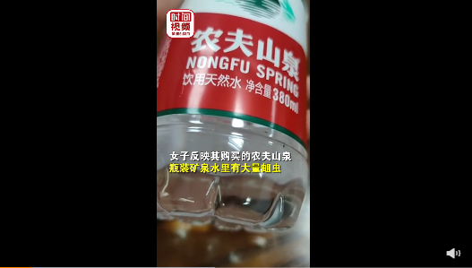 商业 网曝农夫山泉矿泉水里有异物 客服:如果有问题会上门核实 2021-10-22 08:31:20 分享 来源:九派新闻近日,网曝一女子购买的“农夫山泉”矿泉水里面有异物。女子表示,所购矿泉水并未开封,且处于保质期内,异物绝非从外界进入。据农夫山泉客服称,尚不清楚此事,有问题将会上门核实处理。据当事女子留言,目前已有厂家上门核实处理此事。
