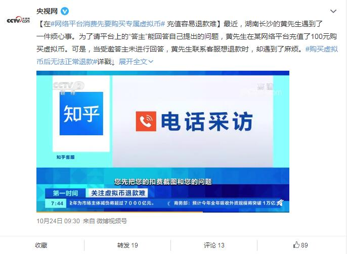 商业 知乎回应不退款只返币:已私信用户安排退款 2021-10-26 08:30:10 分享 来源:中新网近日,有媒体报道消费者充值虚拟币后申请退款难,知乎、QQ音乐等平台不退款只返币。25日,知乎方面对表示,“在央视报道之前,小管家私信用户表示将安排退款了。”有律师表示,不退款只返币平台涉嫌强制消费。