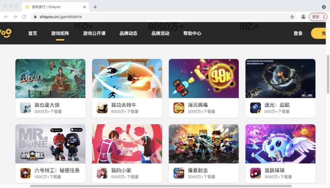 2019年至今,成立一年半时间,Ohayoo门下有数款休闲游戏爆款,包括《音跃球球》《我功夫特牛》《脑洞大师》《是特工就上一百层》等产品,当中有9款游戏流水过亿,其中最高单款流水过6亿,39款游戏流水过千万,单款游戏最高收入超过6亿。