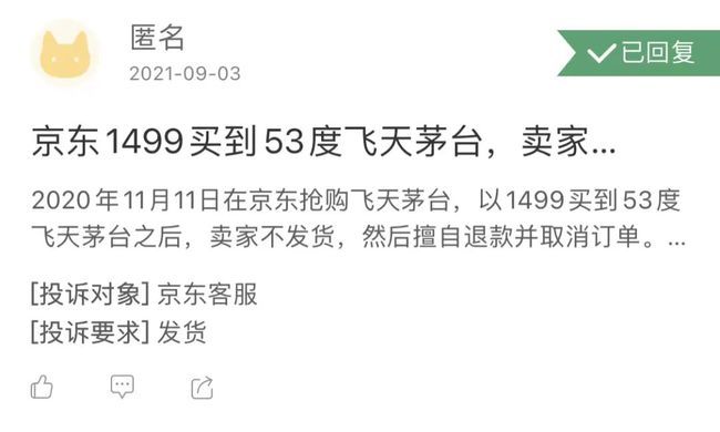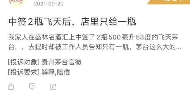 除了投放量不公开、不透明,电商平台抢购茅台还存在其他诸多问题。黑猫投诉平台显示,很多消费者表示,在平台购买茅台后,平台迟迟不发货。有的明明购买了两瓶,到手后却只有一瓶。类似于“所谓原价抢购飞天茅台,就是平台用来引流的幌子而已”“缺乏诚信的骗人奸商,欺诈盛行的市场”的声音此起彼伏。