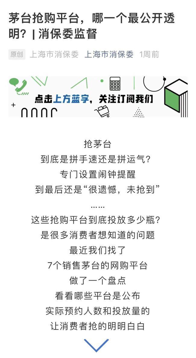 不久前,上海市消保委测试在7家网购平台抢购茅台,结果也是一无所获。上海市消保委表示,平台到底投放了多少瓶飞天茅台,是很多消费者关注的问题,目前大部分平台都未公布投放数量。各大平台应该公开、透明地让消费者知道放量总数有多少,让消费者明明白白消费。