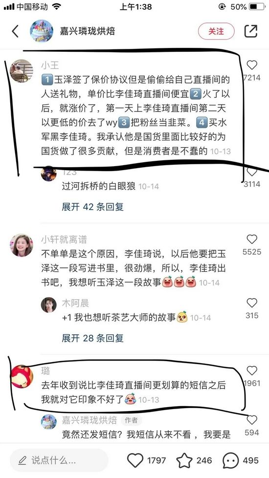 但好景不长,当年9月,玉泽却突然宣布终止合作,并发表声明称,“第一时间与李佳琦团队沟通续约,但因商务条款原因暂时未对合作达成一致”。对此,有不少粉丝认为,双方分手的原因与玉泽未能满足李佳琦提出的低价条件有关。“签订保价协议,但官方直播间价格比李佳琦直播间更便宜”成为粉丝重点吐槽的一大原因。