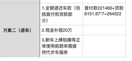 10月22日,黄女士向上海蔚来方面提出两个和解方案。一是换与原车同等配置新车+10万积分+现金补偿7万元,另外蔚来方面出具本次事件的调查报告等;二是全款退还车款(包括首付和贷款部分)+现金补偿20万元等。