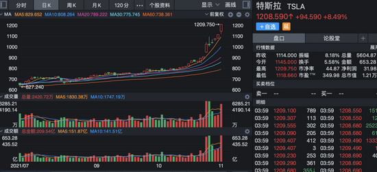特斯拉股价再创新高