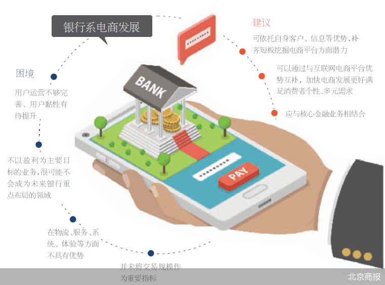 “和互联网电商不同的是,银行系电商平台依旧主要依靠银行总行来进行开发、运营。”一位银行业从业人士在接受北京商报记者采访时直言,未来银行系电商平台可以依托自身客户、信息等优势,补齐短板挖掘电商平台方面的潜力,或者可以通过与互联网电商平台优势互补,加快电商发展,就是要更好地满足消费者个性、多元化需求。