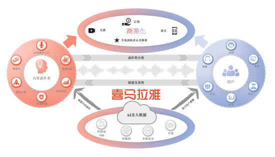在它家自己画的模型图上,上有四大商业化变现路径,下有AI大数据算法支撑,左有PGC/UGC/PUGC培养机制,右有用户心智培养,堪称一套完美的“声意”,颇能自圆其说。