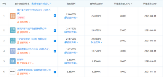 据企查查信息显示,南京盛腾注册资本为15亿元,由段连祥、成都蓉璞科技合伙企业(有限合伙)、南京兴智科技产业发展有限公司、一汽股权投资(天津)有限公司、厦门道合智联投资合伙企业(有限合伙)5个股东出资成立。