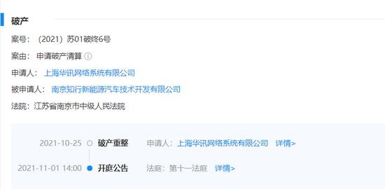 事实上,据案件追诉,就在上月25日,南京知行新能源就已被上海华讯申请破产重整。