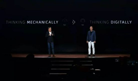 毕福康(左)和戴雷2018年CES展上介绍拜腾,图源BYTON拜腾官微