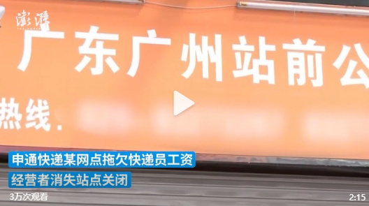 商业 申通快递回应一网点经营者跑路:数名快递员工资未结清 2021-11-12 08:07:39 分享 来源:新浪财经近日,广东广州。申通快递某网点拖欠快递员工资,经营者消失站点关闭。员工称,他曾告知无法继续经营,说自己没有钱给他们。申通片区负责人回应,系经营者突然违约,愿向员工提供帮助,此外,准备走法律途径追求该网点经营者的违约责任。