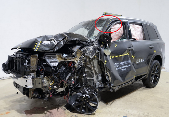 在备受关注的正面25%偏置碰撞项目当中,理想ONE的A柱出现轻微变形,气囊以及侧气帘均正常工作,不过约束系统表现较差,侧面头部安全气囊打开后的覆盖范围有限,安全带对假人约束力有限,导致前倾过度,最终约束系统与假人运动项目获得了A(良好)评级。
