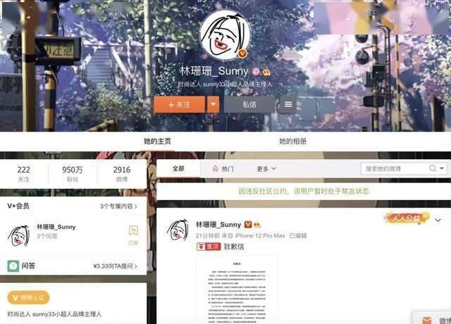 雪梨和林珊珊微博均已被禁言 来源 / 微博