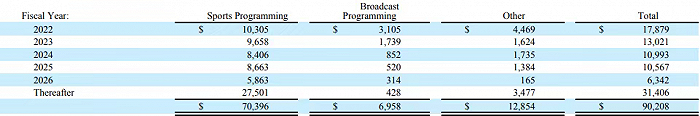 从迪士尼披露的内容合约构成,我们可以大致看到它的内容开支主要是花在购买体育赛事转播权。