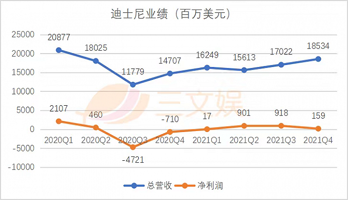 2021财年全年,迪士尼营收674.18亿美元,同比增长3%;净利润19.95亿美元,同比扭亏为盈。