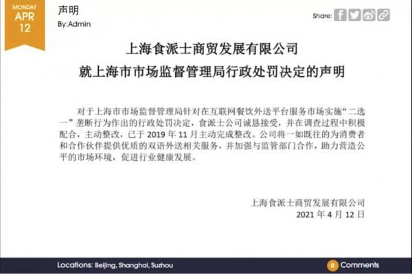 接到处罚书的“食派士”很服气,当天就发布声明,表示已经主动整改。
