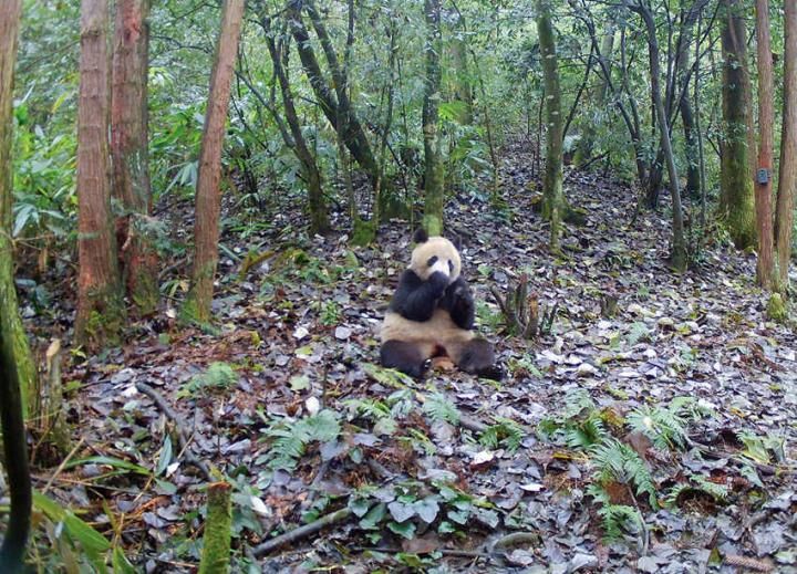 野生成年大熊猫11月21日下午活动照片。都江堰市委宣传部供图
