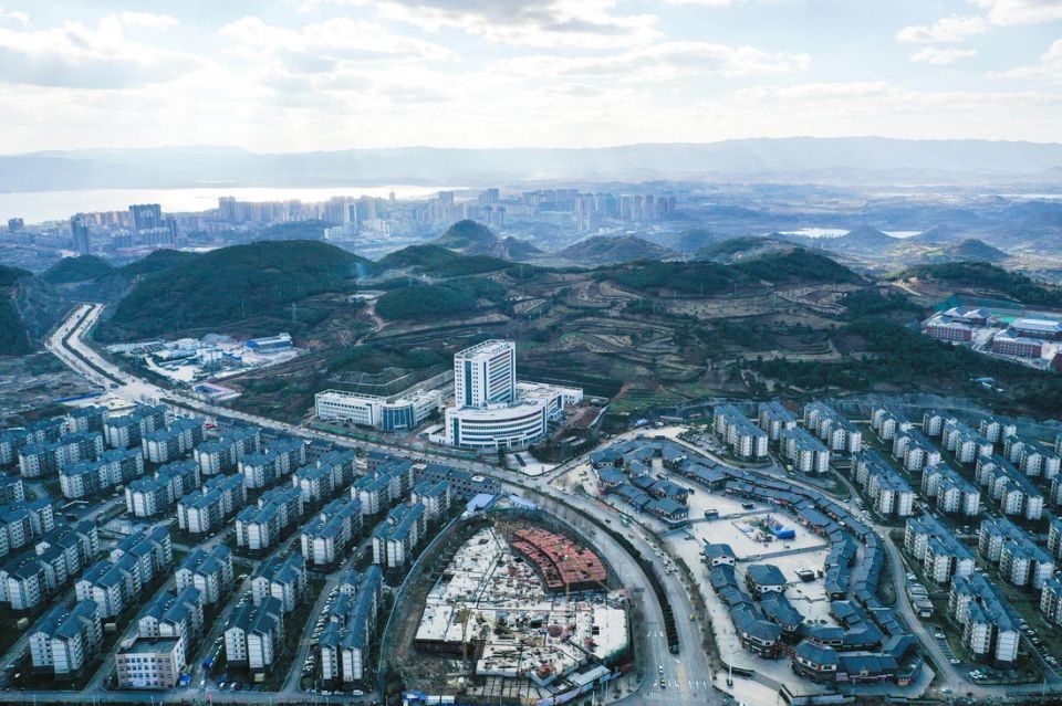 这是贵州省威宁县五里岗街道朝阳新城和阳光新城易地扶贫搬迁安置小区(11月28日摄,无人机照片)。新华社记者 杨文斌 摄