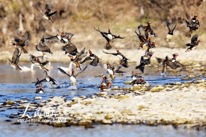 首页 湖北南漳:百对鸳鸯栖息清凉河 2021-12-06 11:03:24 分享 2021年12月4日,湖北省襄阳市南漳县易家湾村清凉河国家湿地公园内,成群结对的野生鸳鸯在水面嬉戏,给宁静的水面增添了生机与活力。熊明银摄(人民图片网)
