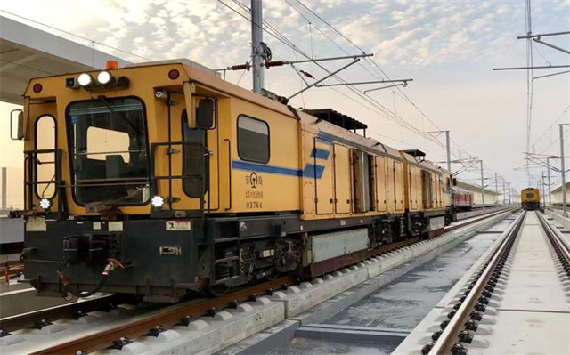 中国铁物在京张高铁进行钢轨道岔打磨作业。 受访者供图