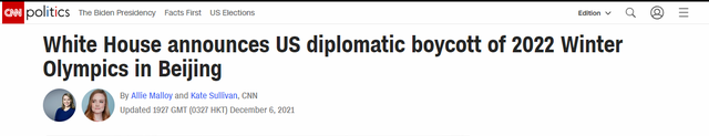 值得注意的是,在美国媒体反复发出这种预报之时,中国外交部发言人赵立坚6日已在例行记者会上做出回应:“我想强调,冬奥会不是政治作秀和搞政治操弄的舞台,美国政客在没有受到邀请的情况下,不断炒作‘外交抵制’北京冬奥会,完全是自作多情,哗众取宠。政治操弄是对奥林匹克宪章精神的严重玷污,是赤裸裸的政治挑衅,更是对14亿中国人民的严重冒犯,只会让中国人民和全世界人民看清看透美国政客的反华本质和虚伪面目。”