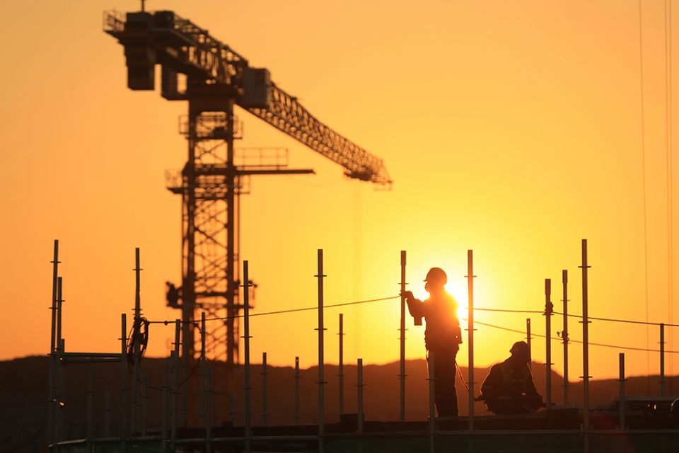 工人在位于辽宁省葫芦岛市的徐大堡核电站3号机组施工现场作业(11月26日摄)。新华社记者 杨青 摄