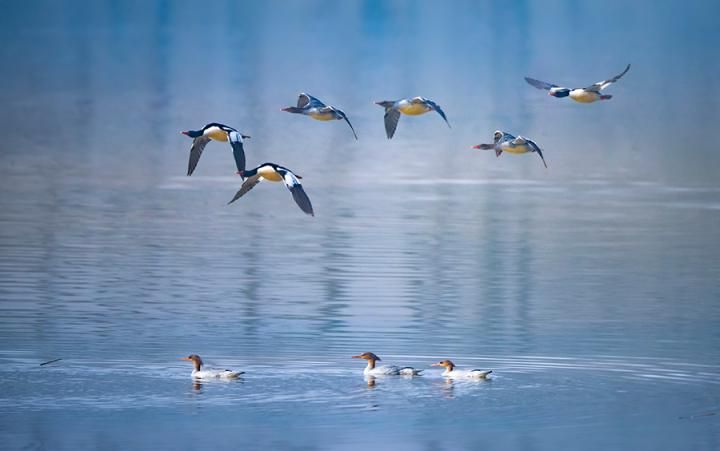 首页 “国宝鸭”飞临大别山 2021-12-08 11:01:15 分享 人民网六安12月8日电 近日,在安徽省霍山县东淠河水域,一群被誉为“国宝鸭”的中华秋沙鸭游弋在洒满阳光的河面上,尽情享受绿水青山带来的舒适和惬意。中华秋沙鸭是国家一级保护动物,数量稀少。因其对生存环境极为挑剔,也被称为“生态试纸”。霍山县地处大别山腹地,生态环境优越、水资源丰富、水生动植物充足,是冬季候鸟理想的迁徙、越冬地。据悉,今年是2016年以来中华秋沙鸭连续第6年飞临当地。(陈浩、杜世宏、王劲松)