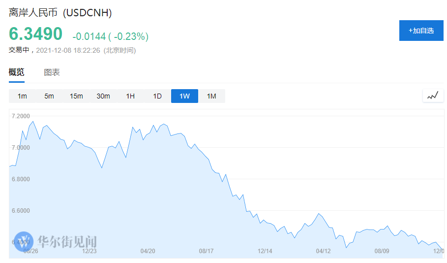 截至12月8日10点,今年在岸人民币对美元即期汇率累计升值2.85%,同期美元指数上涨6.88%。