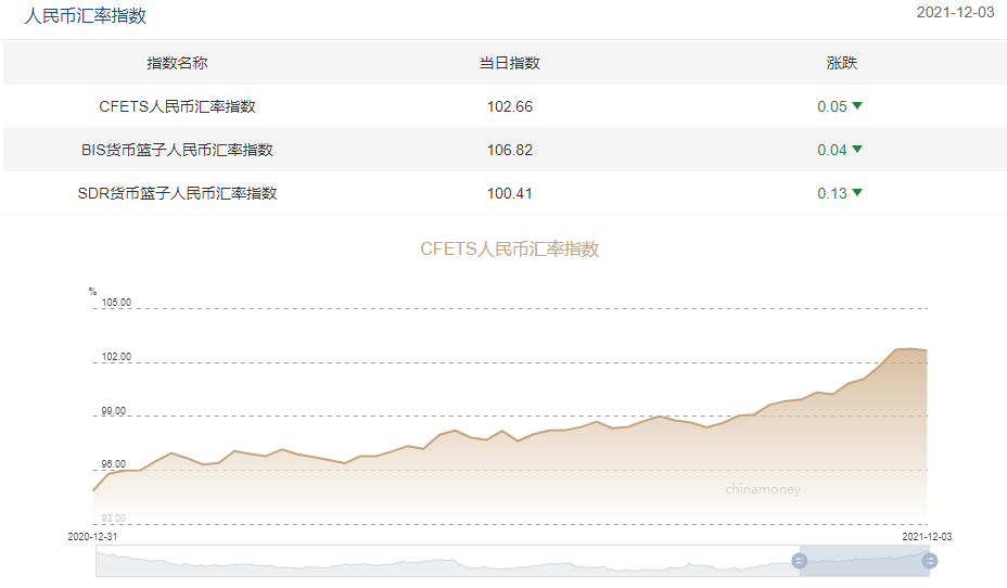 与此同时,截至12月3日,反映人民币对一篮子货币加权平均汇率变化的CFETS人民币汇率指数报102.66,为2015年12月以来的最高水平。