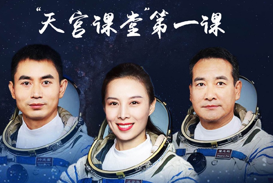 随着一颗旋转的陀螺,镜头转入了中国空间站。随后,神舟十三号乘组航天员翟志刚、王亚平、叶光富组成的“授课小组”不仅对在轨工作场景进行了介绍,还在失重条件下为大家演示了多项教学实验。这也是继2013年首次太空授课活动后,“太空班”再次开课。