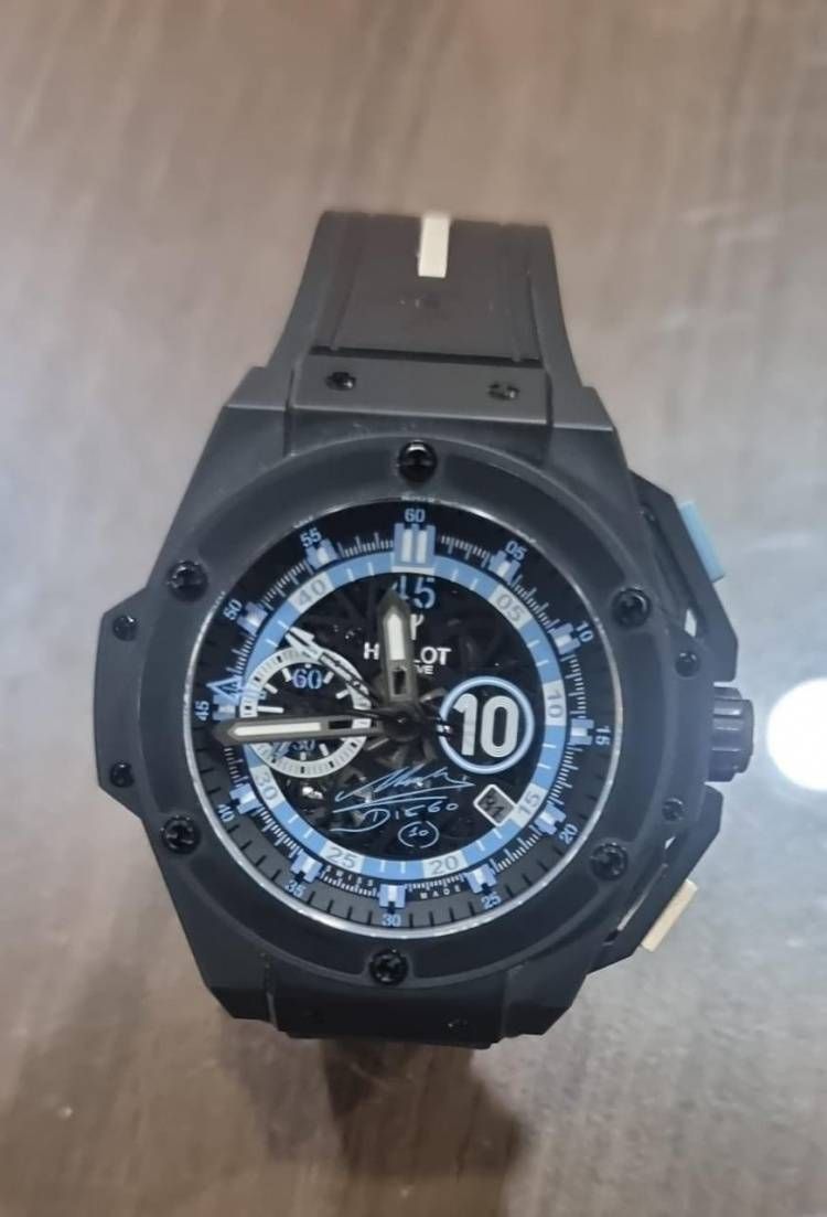 这块手表是宇舶为马拉多纳独家定制的产品,一个限量版的Big Bang Unico型号,价值约为26500美元。