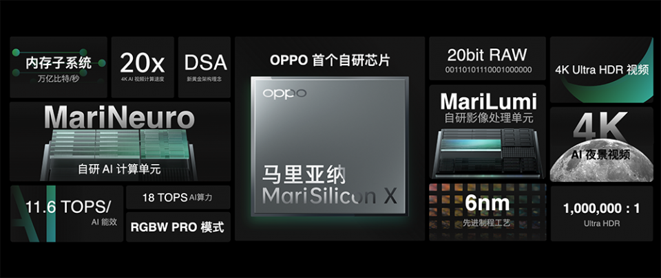 OPPO首个自研芯片马里亚纳MariSilicon X正式推出。