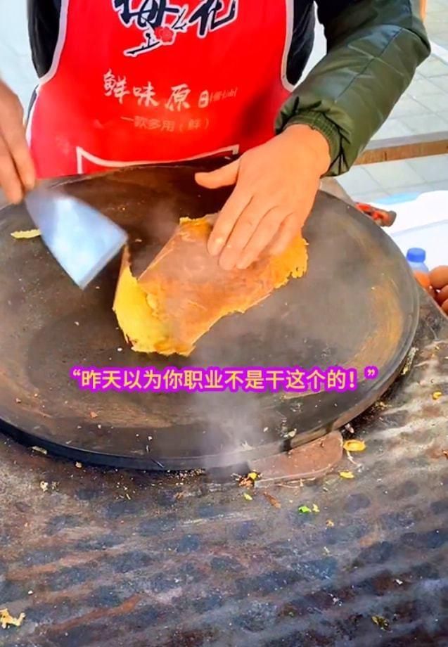 这位女子觉得,那个大妈摊煎饼的手法有些特殊,怎么摊了3个煎饼才成功呢?就怀疑了一下她的身份!难道她有啥特殊的身份?