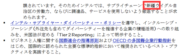 我们的投资者和客户已询问英特尔是否从中国新疆地区采购产品或服务。多个国家与地区的政府已对来自新疆地区的产品实行限制。因此,英特尔需要确保我们的供应链不使用任何来自新疆地区的劳工、采购产品或服务。