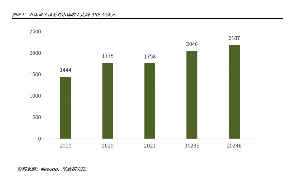 目前,游戏行业已处于手游时代中晚期,增量用户红利期已过,尽管在2020年疫情的影响下有所回弹,但总体而言,全球游戏行业市场增速不断放缓。根据 Newzoo《2021年全球游戏市场报告》,在主机和PC市场的逐渐萎缩下,预计2021 年全球游戏市场将收获来自消费者的1758亿美元收入,同比下降1.1%。移动游戏仍占据游戏市场的主导地位,预计2021年,移动游戏将创造907亿美元收入,同比增长4.4%,占据全球游戏市场收入的52%。