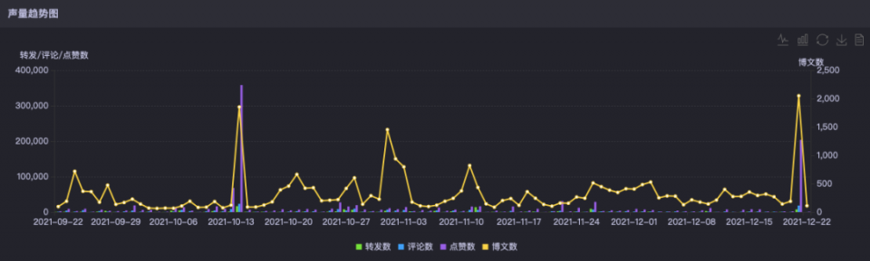 通过时趣洞察引擎检索“玉泽“,其声量趋势在12月21日也就是薇娅被封的第二天,互动数达到了峰值。值得注意的是,10月出现的声量攀升,正是上一次玉泽陷入与李佳琦舆论的时段。