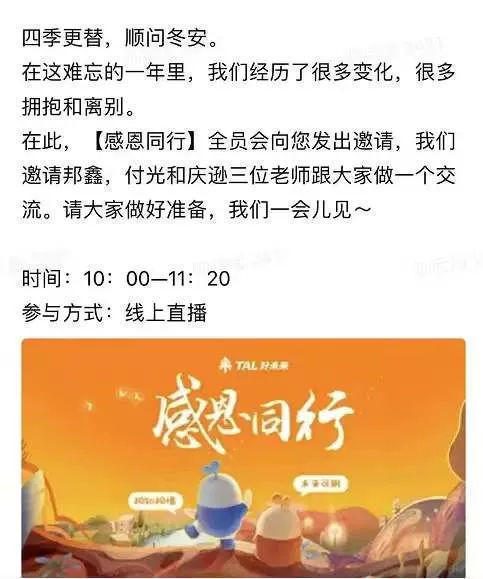 12月22日10点,好未来( TAL.US )举办了一场线上全员告别会。