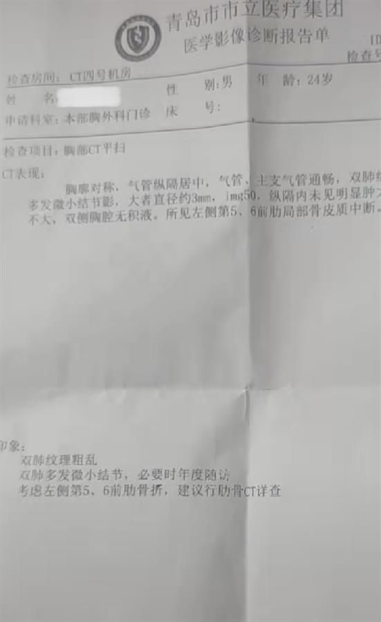 网传视频中称,近日,青岛一名24岁男子在骑车等红绿灯时,会被女友猛捶几下,与前车的距离太近时,也会被女友挨揍。只要做了女友不满意的事情,他就一定会被女友“暴打”,最后竟然被打断了三根肋骨。视频中,小伙还晒出了病历。