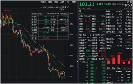 百度股价也在不断调整,5月中以来已跌去超60%,市值也被京东、拼多多强势超越。