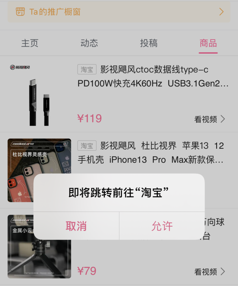 影视飓风商品橱窗跳转,图/影视飓风商品橱窗截图