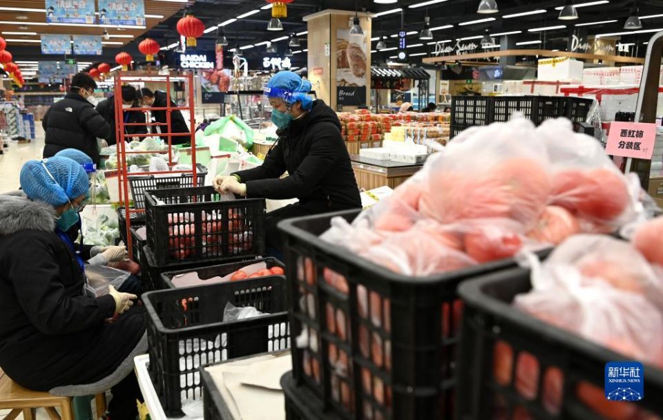 首页 西安开启“送菜”模式 保障群众生活所需 2021-12-30 09:14:36 分享 12月29日凌晨,在西安曲江新区一家超市内,超市和疫情防控指挥部工作人员分装即将配送的免费生活物资。自12月27日零时起,西安市进一步强化疫情防控措施,所有居民除按要求参加核酸采样外,均不出户、不聚集,非疫情防控及民生保障车辆不得上路。为保障群众基本生活,12月28日晚,西安全市总动员,各区县连夜组织准备蔬菜等生活必需品,为封闭管理小区集中配送免费生活物资,让广大市民静下心来,足不出户,居家防控。新华社记者 刘潇 摄