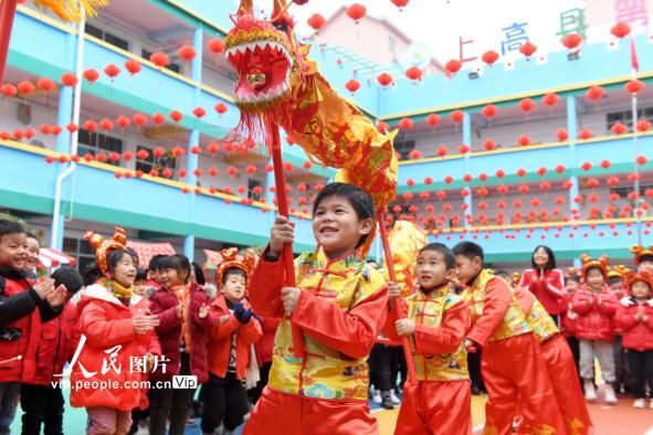 元旦前夕,上高县各中小学、幼儿园的师生们以多种欢乐喜庆的形式迎接2022年的到来,表达对新年的期盼与祝福。周亮摄(人民图片网)