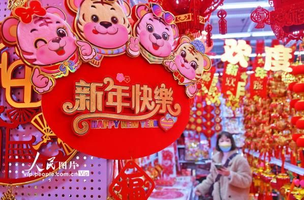 新年将至,山东烟台各大节庆用品市场购销两旺,人们选购灯笼、窗花、春联等新年饰品,装扮家居,喜迎新年。孙文潭摄(人民图片网)