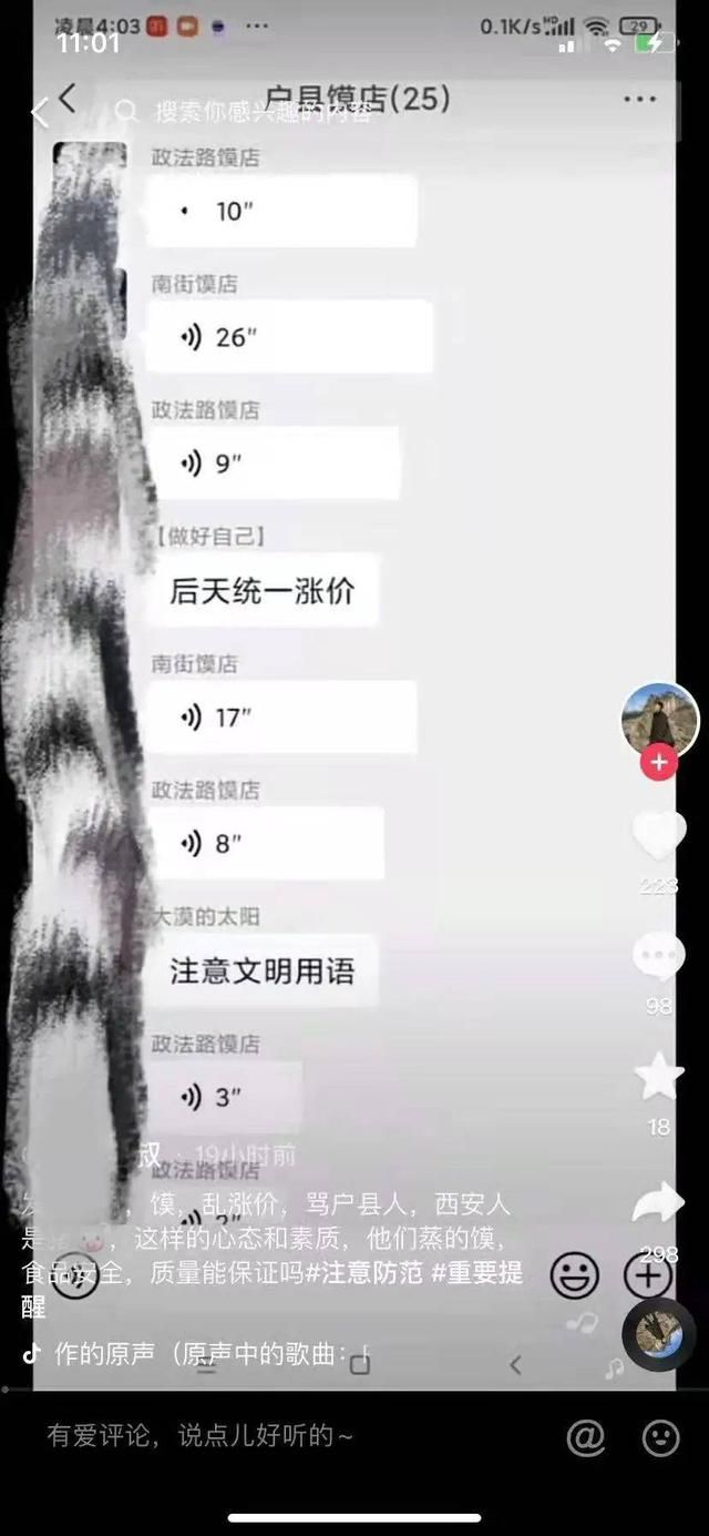 “户县馍店”微信群内发布不当言论者已被警方带走调查