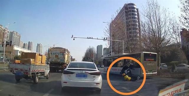 车载录像视频显示,1月2日12时18分,一名外卖员骑行在机动车道上,后方一辆公交车行驶时将其撞翻。外卖车被公交车卷入后甩出,外卖员摔倒在地后慢慢站起来,并扶起被撞翻的骑行车辆,公交车则并没有停下,而是直接开走。