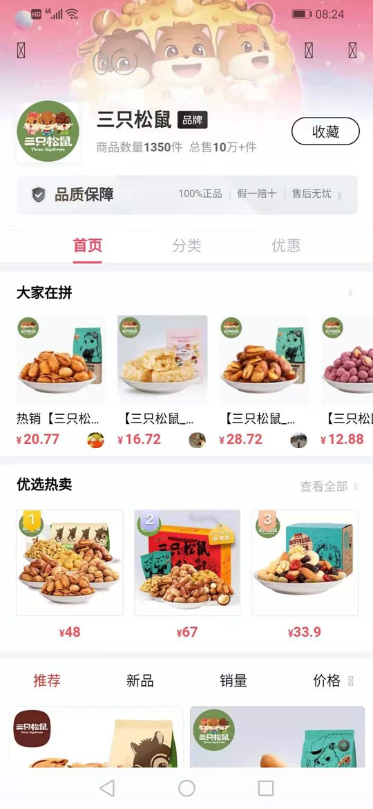 对此,对此,拼多多方面回应称,2017年底,三只松鼠以官方旗舰店的方式入驻拼多多,并多次联合平台推出定制化促销活动。截至目前,三只松鼠于拼多多的品牌专卖店依旧在售。