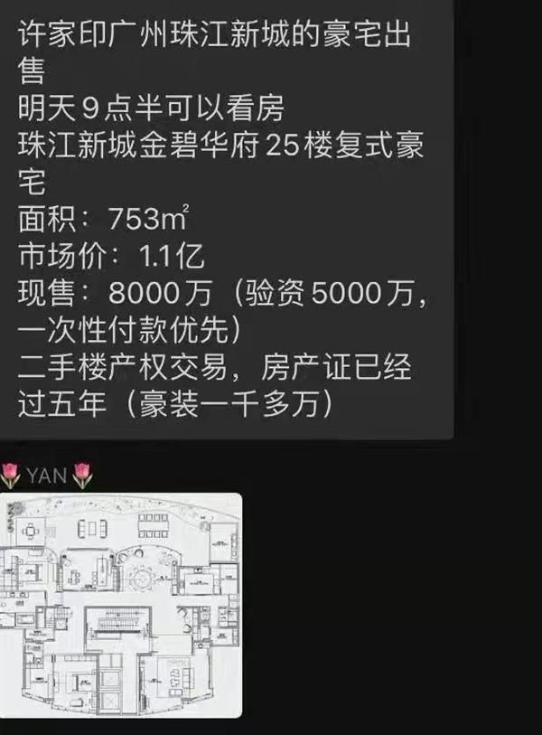 据媒体报道,链家中介证实了网络平台流传的一则许家印广州珠江新城豪宅出售的消息。